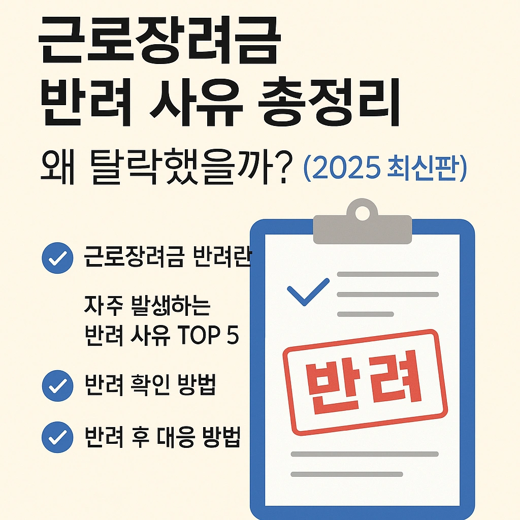 근로장려금은 소득·재산 조건만 충족하면 누구나 신청 가능한 제도입니다. 하지만 반려 사유는 다양하고, 단순한 실수로도 혜택을 놓칠 수 있습니다.